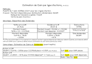 Ne prenant pas en compte uniquement le coût de l’ensemble des apports liés au permis, la présentation a été faite d’un rapport entre les dividendes des actions apportées par la société Site à Watts et les actionnaires ayant pris des actions pour financer la construction.